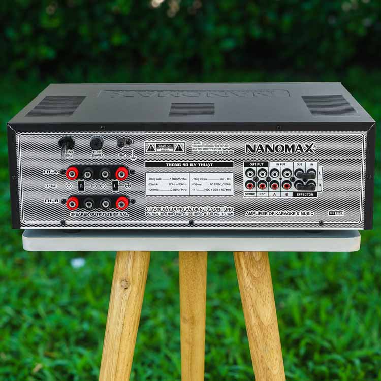 Ngoài ra, sản phẩm còn trang bị mạch bảo vệ loa bằng rơ-le, biến áp lớn và linh kiện chất lượng cao giúp thiết bị hoạt động ổn định trong thời gian dài. Với thiết kế đẹp mắt, công suất mạnh và nhiều tính năng tiện lợi, Nanomax PA-1209A là lựa chọn phù hợp cho dàn karaoke gia đình, quán cafe giải trí hoặc phòng hát kinh doanh nhỏ.